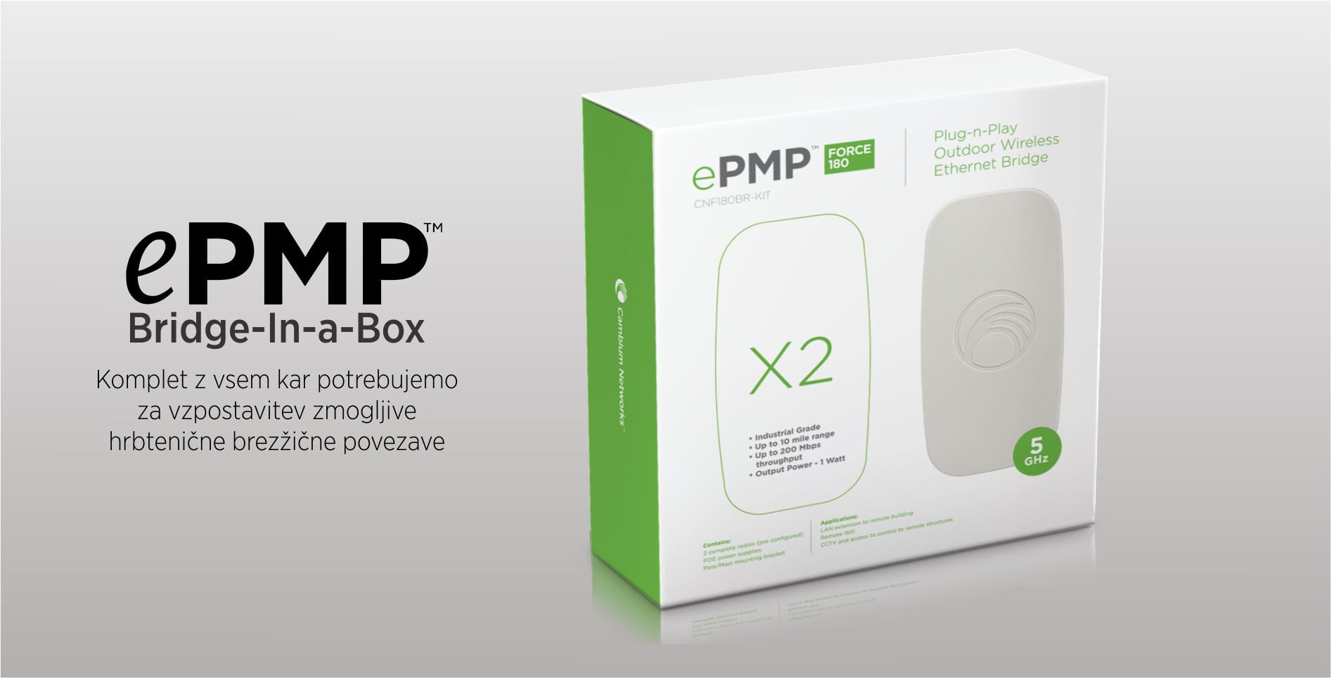 ePMP Force 180 je 5 GHz brezžični širokopasovni radijski bridge nove generacije. Majhen in eleganten bridge ima vgrajeno zmogljivo 16 dBi patch anteno, ki podpira prenosne hitrosti do 200Mb/s na razdaljah do 16km. Vgrajena GPS sinhronizacija poskrbi za občutno izboljšanje spektralne učinkovitosti, Beamforming pa za zmanjšanje motenj iz okolice in povečanje kapacitete povezave. S tem Force 180 bridge dosega do 3x večjo kapaciteta prenosa podatkov v primerjavi s konkurenčno opremo. Uporabljamo ga za dostavo internetnega signala do zunanjih Wi-Fi dostopnih točk, do katerih je zelo težko in drago pripeljati mrežno ožičenje in za vzpostavitev visoko zanesljivih brezžičnih povezav za video nadzorne sisteme. Bridge lahko deluje v PTP in PMP načinu in tako omogoča medsebojno povezavo dveh ali več lokacij. Force 180 se lahko pohvali z vgrajenimi industrijskimi komponentami, ki mu omogočajo delovanje v zahtevnih okoljskih pogojih in nizkih temperaturah.