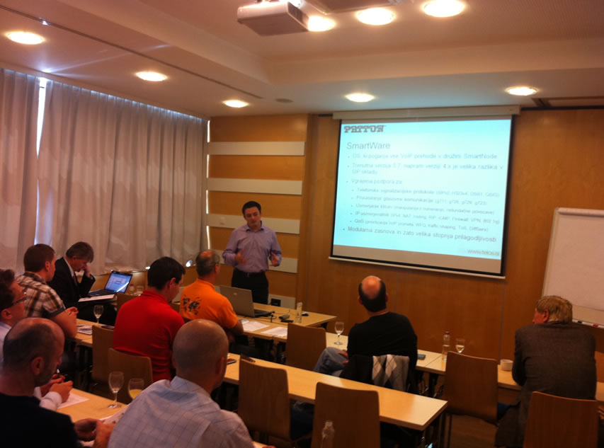 V sredo, 10. maja smo v Mhotelu v Ljubljani pripravili predstavitveno konferenco podjetja Patton. Po uvodnem nagovoru, je predstavnik podjetja Patton, g. Martin Svozil otvoril konferenco s predstavitvijo zgodovine podjetja in produktnega portfolia. Nadaljevanje je pripadalo natančnejši predstavitvi produktne skupine Copper Link - ethernet extenderjev, ki jo je pripravil Jan Hribšek iz našega podjetja. Po krajšem odmoru in kavici, je nadaljeval Martin s povzetkom konkurenčnih prednosti in kupcev Patton proizvodov. Za konec je sledila še predstavitev produktov SmartNode - VoIP prehodov s primeri iz prakse, ki jo je pripravil Dejan Štimpfelj iz našega podjetja. Nadvse uspešen dogodek se je končal s kosilom.